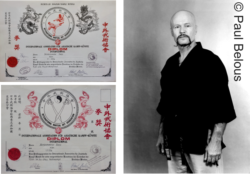Shaolin-Kampfkünste (Jiu Jitsu, Faust- und Fußkampf) bei Paul Belous (10. Dan seit 1979, gest. 9.7.2009) - Köln/Porz, seitdem bei Andreas Woithon (8. Dan)